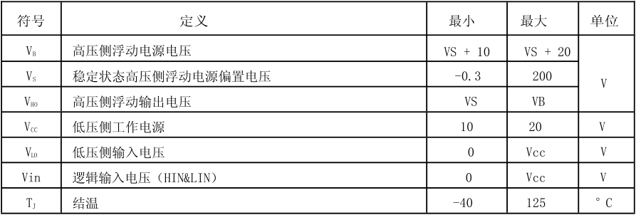 半橋驅(qū)動(dòng)芯片工作范圍: