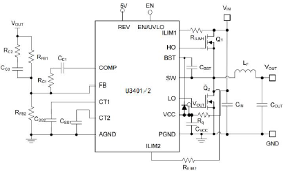 •主要特點:AEC-Q100適用于汽車應用:器件溫度等級1:-40°C至+125°C環境溫度范圍;通用同步降壓DC/DC控制器:寬輸入電壓范圍16.5V至600V;可調輸出電壓;帶線前饋的電壓模式控制;符合CISPR 25 EMI標準;無損RDS(on)或分流電流傳感;開關頻率從10 kHz到0.5MHz;同步輸入和同步輸出能力;60ns最小導通時間高VIN / VOUT比;180ns最小導通時間低壓差;1.2V參考±1%反饋精度;220ns自適應死區控制;1.5A源和1.8A吸收能力;預置偏置啟動的低側軟啟動;可調軟啟動或可選電壓跟蹤;精確使能輸入和漏極功率-良好的排序和控制指示器;呃逆模式過流保護;帶遲滯的輸入UVLO; VCC和柵極驅動UVLO保護;帶遲滯的熱關機保護;帶可濕性側板的16針SOP封裝;使用UNI-SEMI Power Designer®的U3401/2創建定制設計