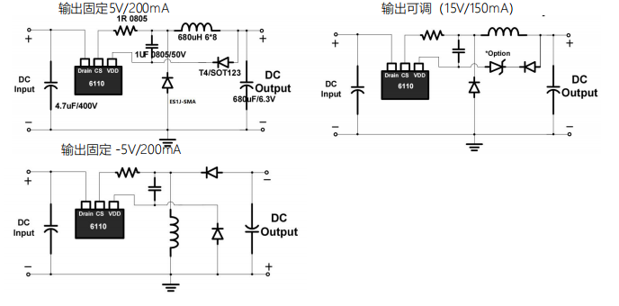 U6110是一款非隔離型、高集成度且低成本的 PWM功率開(kāi)關(guān),適用于降壓型和升降壓型電路。 U6110采用高壓?jiǎn)尉A工藝,在同一片晶圓上集 成有500V高壓MOSFET和采用開(kāi)關(guān)式峰值電流模式控 制的控制器。在全電壓輸入的范圍內(nèi)可以保證高精度 的5V默認(rèn)輸出。在芯片內(nèi)部,振蕩器頻率固定為 31kHz且?guī)в卸额l功能,在保證輸出功率的條件下優(yōu) 化了EMI效果。同時(shí),芯片設(shè)計(jì)有輕重載模式,可輕 松獲得低于50mW的待機(jī)功耗。 U6110集成有完備的保護(hù)功能: VDD欠壓保護(hù)、 逐周期電流限制、過(guò)熱保護(hù)、過(guò)載保護(hù)和短路保護(hù)等。