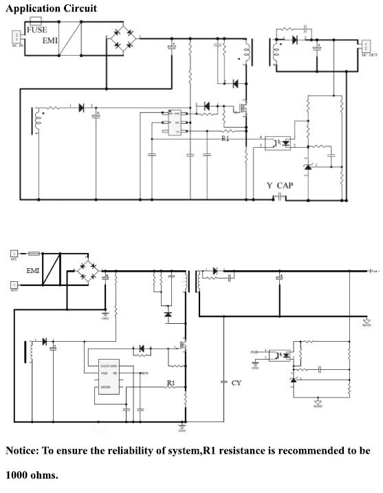 •主要特點(diǎn):數(shù)字頻率變換技術(shù),提高EMI性能。電流感測(cè)輸入的前緣消隱。斜率補(bǔ)償。突發(fā)模式控制,提高效率,優(yōu)化待機(jī)功耗。啟動(dòng)電流小,運(yùn)行電流小。柵極輸出電壓箝位。軟啟動(dòng),以減少M(fèi)OSFET應(yīng)力在上電期間。綜合保護(hù)功能:1、VDD2欠壓鎖滯(UVLO), vdd3過壓保護(hù)(OVP),周期電流限制,4、限流補(bǔ)償,在通用交流線路輸入時(shí)獲得相同的輸出電流,5、過載保護(hù)(OLP), 6、過溫保護(hù)(OTP)。300mA驅(qū)動(dòng)能力。