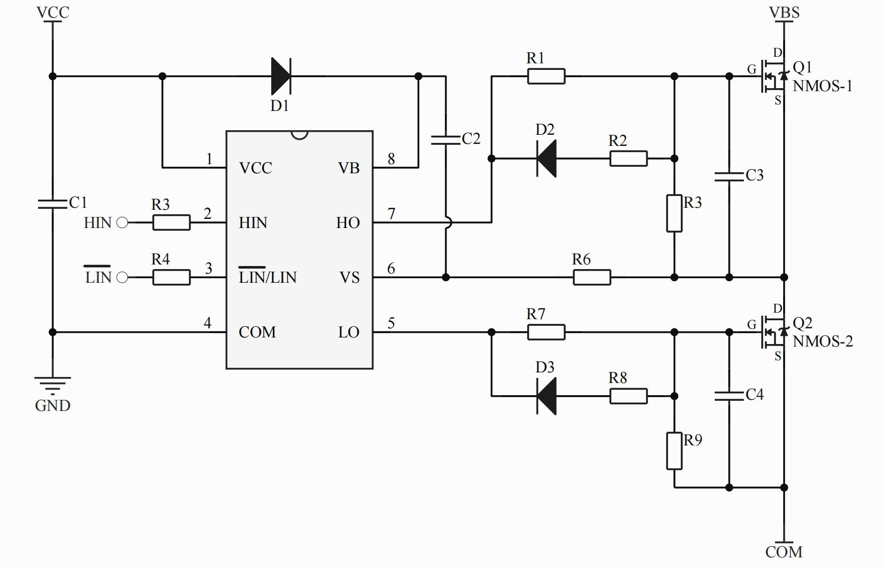 •主要特點: 集成自舉二極管(1);高端懸浮自舉設計 ; 最高工作電壓可達+300V ;負瞬態電壓承受能力;支持柵極驅動電壓從9 到 20V;VCC /VBS欠壓保護 (UVLO) ;兼容3.3V, 5V輸入邏輯 ; 內置直通防止和死區時間 ; 芯片傳輸延時特性
