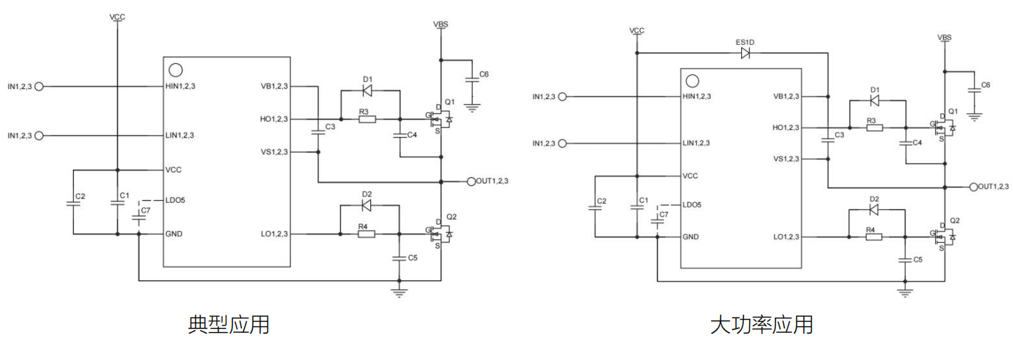 懸浮絕對電壓:120V;兼容3.3/5V輸入邏輯;驅(qū)動電流:+2.0A/-2.5A(typ.);死區(qū)時間:200ns(typ.);集成VCC和VBS欠壓保護;集成5.0V LDO;5V LDO集成輸出短路保護;集成內(nèi)部自舉二極管;高負瞬態(tài)電壓承受能力:10V(typ.);集成共模噪音消除電路;TSSOP20、QFN24封裝
